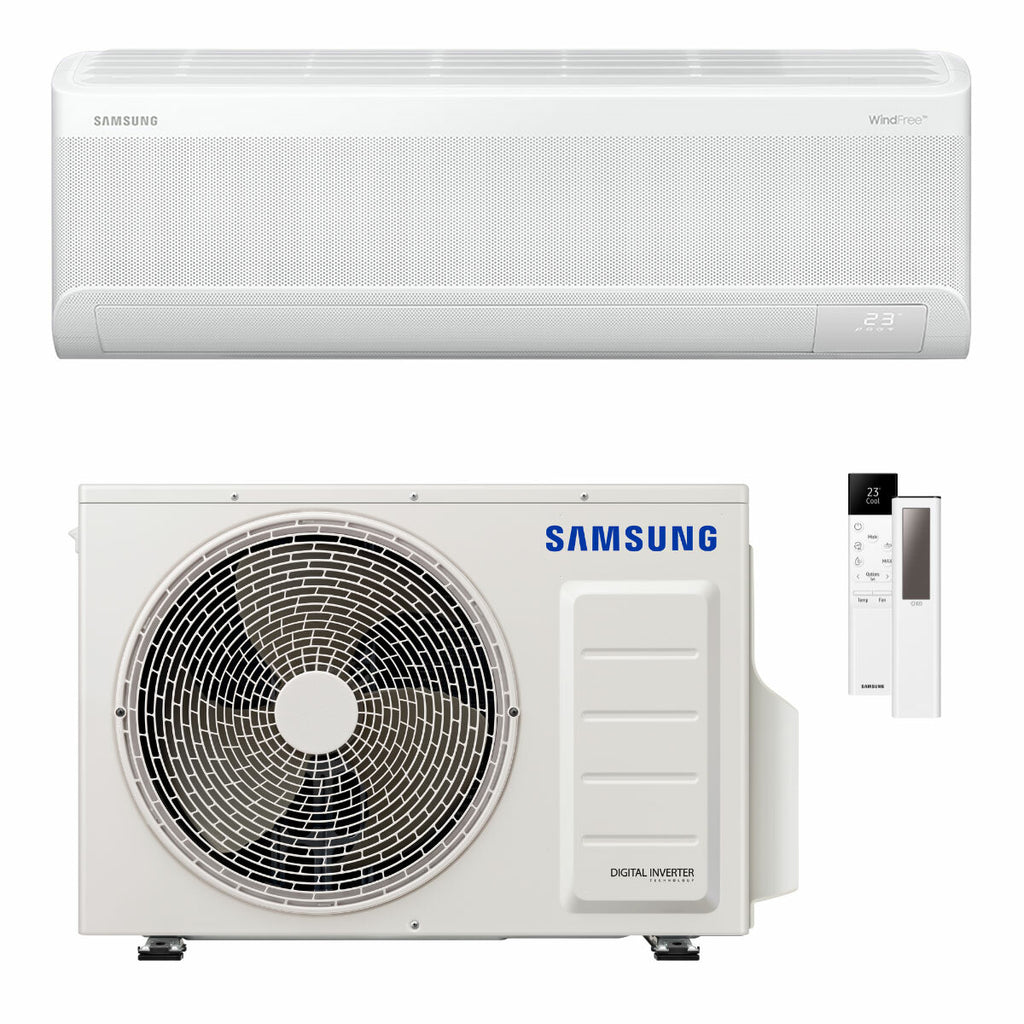 Die Samsung-Außeneinheit für WindFree- Monosplit-Klimaanlagen liefert immer eine Leistung, die wirklich im richtigen Verhältnis zum tatsächlichen Klimatisierungsbedarf der Umgebung steht, in der sich die Inneneinheit befindet. Dank der Wärmepumpentechnologie bietet es hohe Leistung und großen Komfort sowohl beim Kühlen als auch beim Heizen. Dank des Digital-Inverter- Systems ermöglicht die Außeneinheit eine hohe Energieeinsparung und eine besondere Schonung der Umwelt. Es garantiert stets die höchste Energieklasse und reduziert den Abfall auf ein Minimum. Der brandneue Digital-Inverter-Kompressor mit Power-Boost-Technologie ermöglicht weitere Einsparungen und garantiert Wohlbefinden durch die Aufrechterhaltung einer konstanten Temperatur ohne Schwankungen .