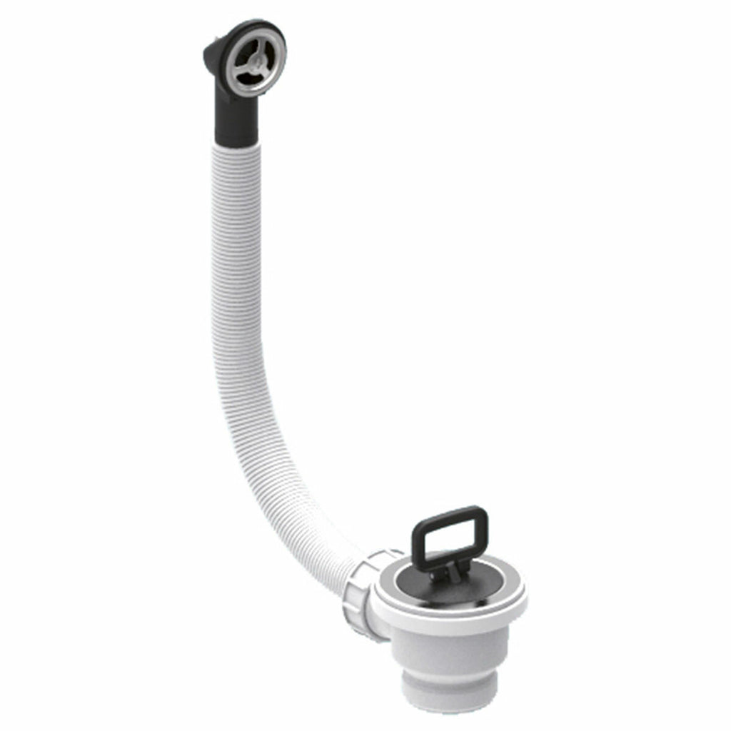 Der Ablauf ist für den Einbau in die Küchenspüle konzipiert: Er wird mit einem rechteckigen Standardkorb und einem Überlauf geliefert. Die Bohrung hat einen Durchmesser von 70 mm, während der Auspuff 1" 1/2 ist.