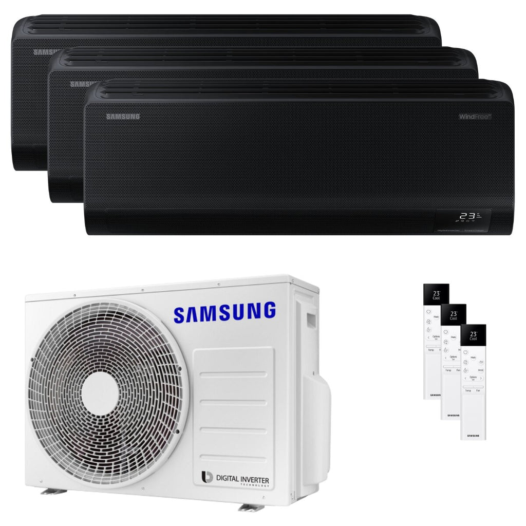 Samsung Windfree Black Trial-Split-Klimaanlage 7000+7000+9000 BTU Inverter A++ WLAN-Außeneinheit 5,2 kW Das Klimaanlagen-Kit ist mit den folgenden Inneneinheiten ausgestattet: