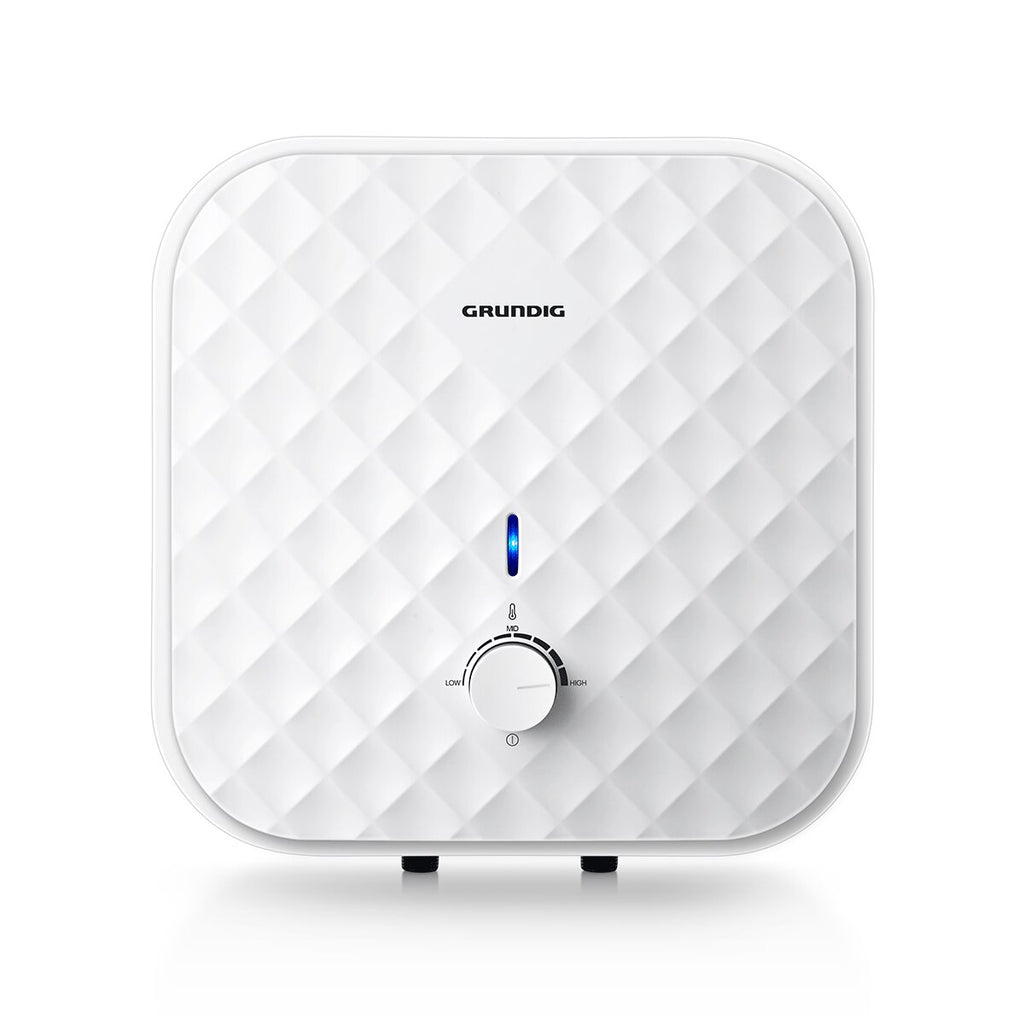 The Grundig Teeny Line GWH 10 L electric water heater is compact, quiet (15 dB), and efficient (energy efficiency class A), ideal for installation above the sink in kitchens or bathrooms. With a titanium-enamelled tank and magnesium anode, it guarantees durability and corrosion resistance. The temperature can be adjusted up to 75°C via a mechanical thermostat.