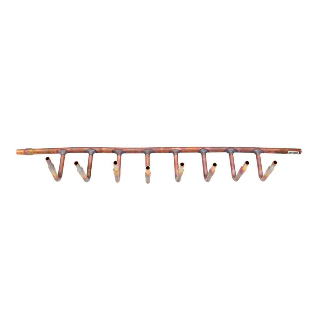 8-connection copper manifold complete with adapters for creating refrigerant piping circuits for VRV, VRF multisplit air conditioning systems.