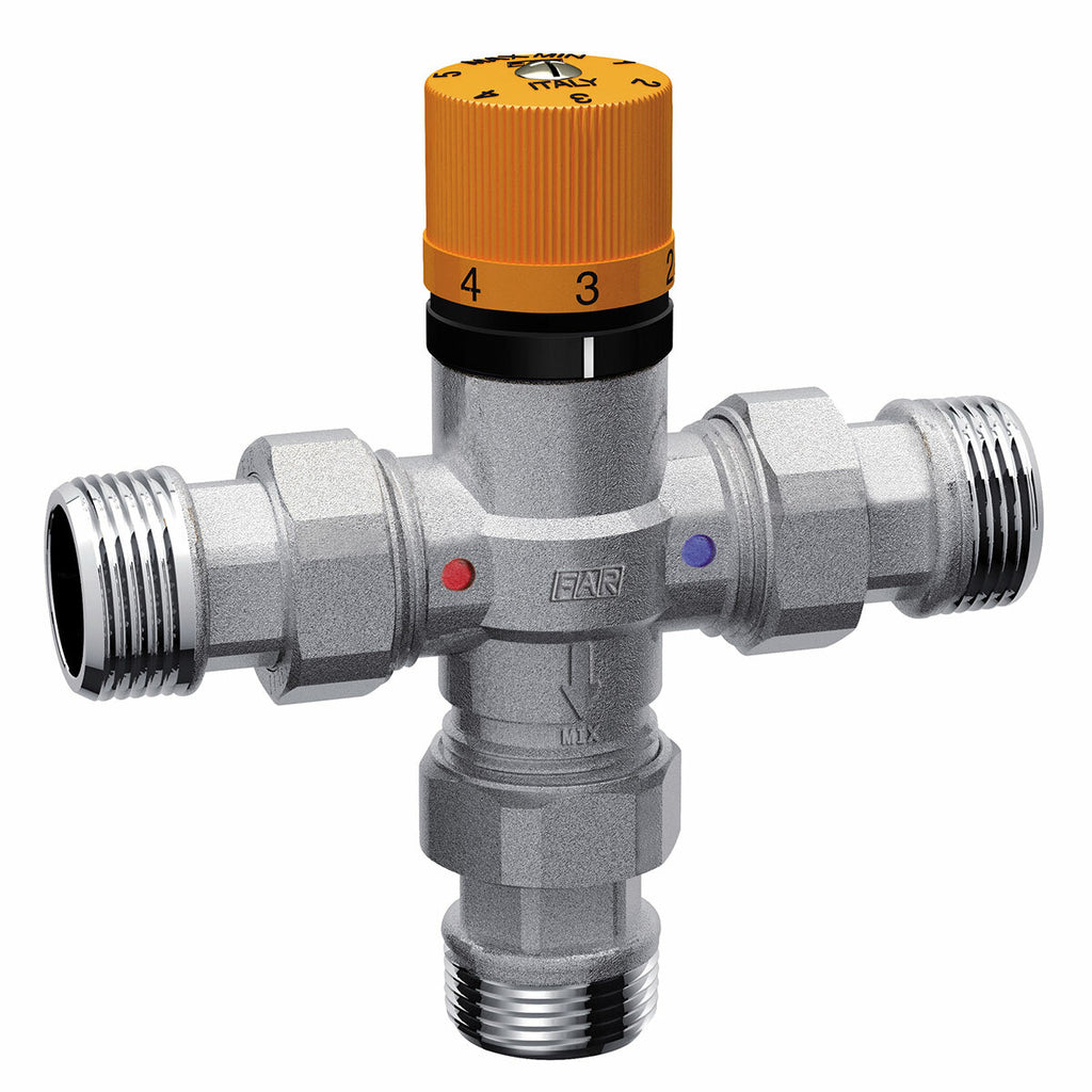 Le mitigeur thermostatique FAR a pour fonction de réguler la température de l'eau chaude sanitaire à une valeur prédéfinie. Conçu pour résister à des températures élevées pendant de longues périodes, il joue un rôle fondamental dans les systèmes de distribution d'eau chaude sanitaire dans lesquels il est nécessaire d'empêcher l'eau d'atteindre les bornes des systèmes à des températures trop élevées.