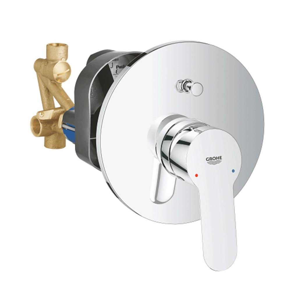 Le mitigeur bain-douche Grohe BauEdge est du type monocommande. Finition chromée avec une brillance évidente et un design moderne et élégant, comprend une cartouche à disque en céramique Grohe Long-Life d 46 mm, un limiteur de débit réglable, un inverseur automatique et un corps intégré avec fixations cachées. Installation intégrée.