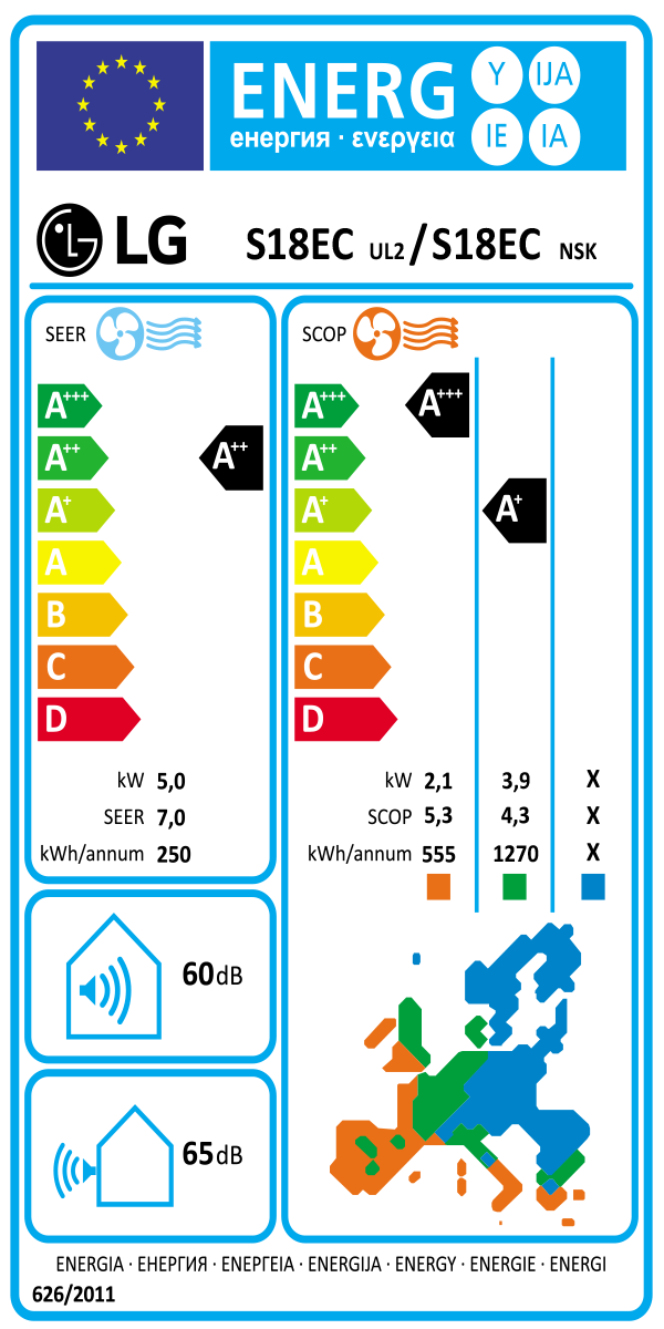LG se fixe pour objectif d'atteindre des performances extrêmement élevées avec des classes énergétiques extrêmement compétitives (A++/A+) tant pour le refroidissement que pour le chauffage.