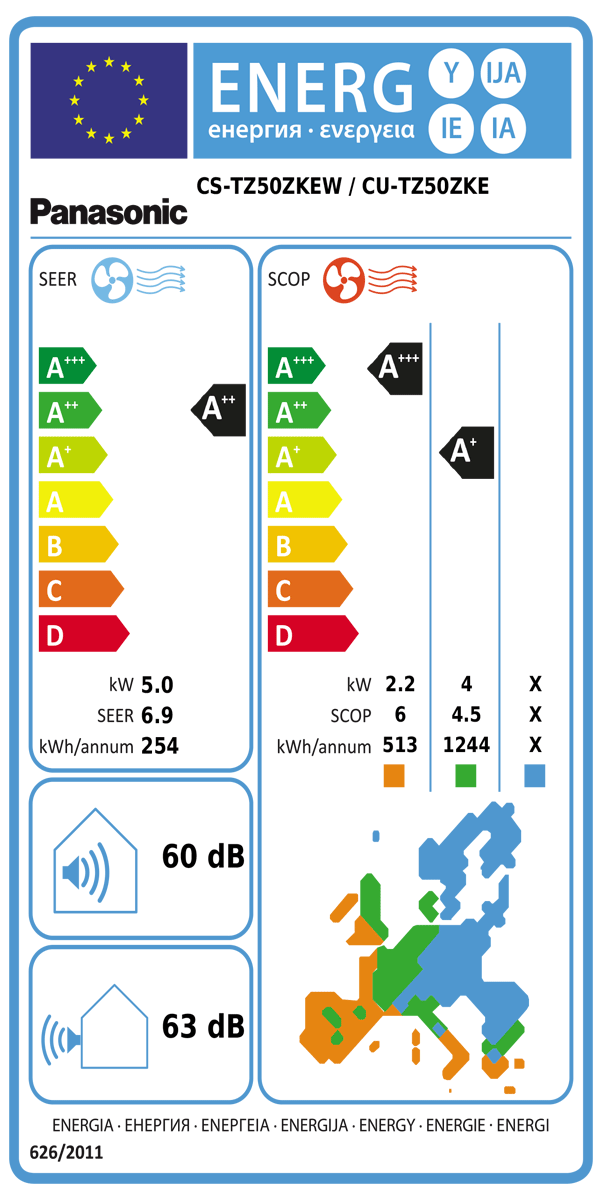 Les objectifs de Panasonic incluent l'obtention d' un rendement très élevé avec des classes énergétiques extrêmement compétitives , tant en refroidissement qu'en chauffage (A++).